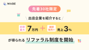 【先着30社限定】ライブコマース専用ECモールアプリ「WABE」、出店企業を紹介すると初期最大7万円+継続販売で売上3%が得られ…